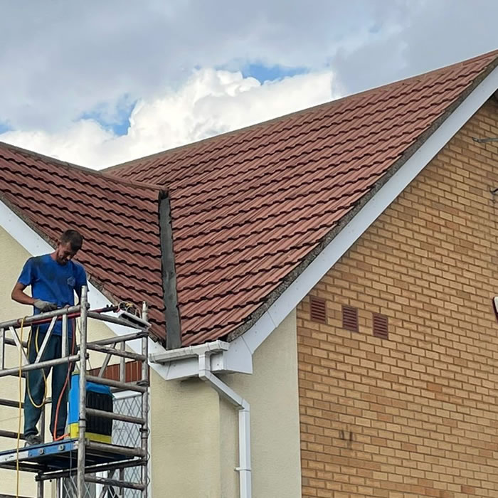 We then apply a biocide treatment to your roof tiles. In this situation the biocide used will actively self-clean the roof without a deep clean removing any form of organic growth still left on the surface of your roof tiles.