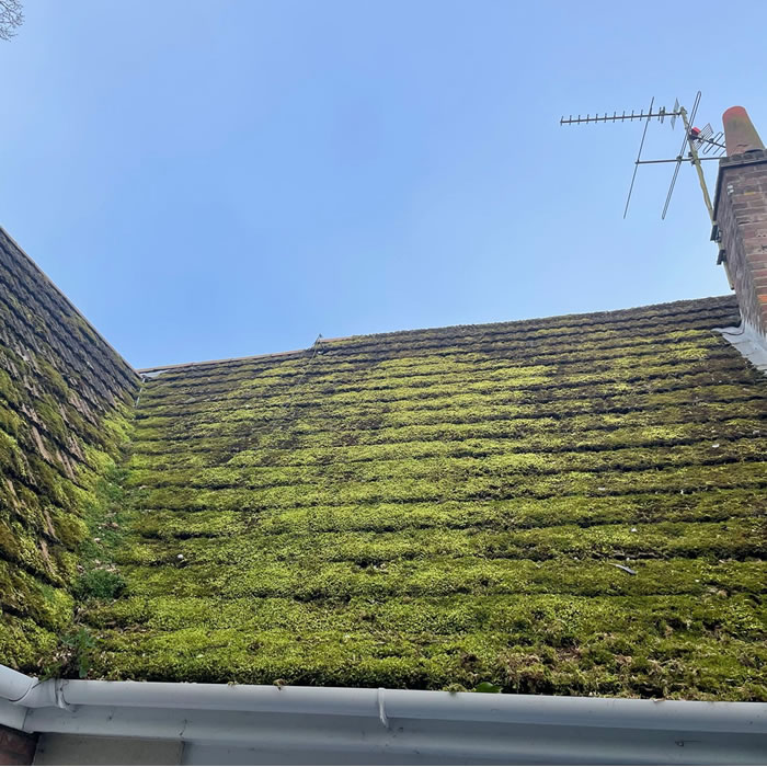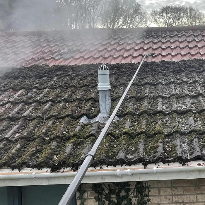 Bungalow with roof tiles cleaned of moss, lichen & algae