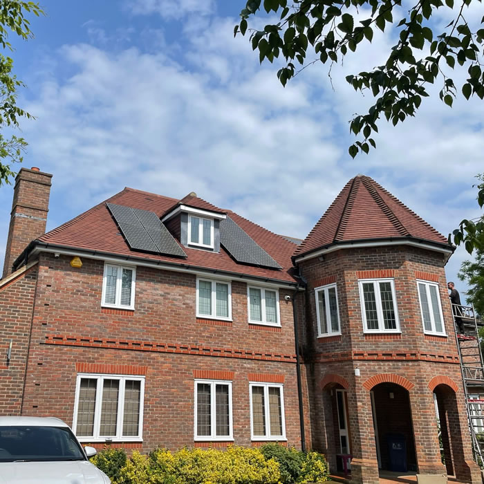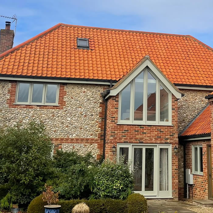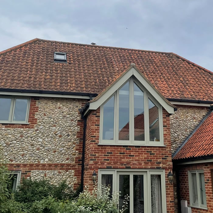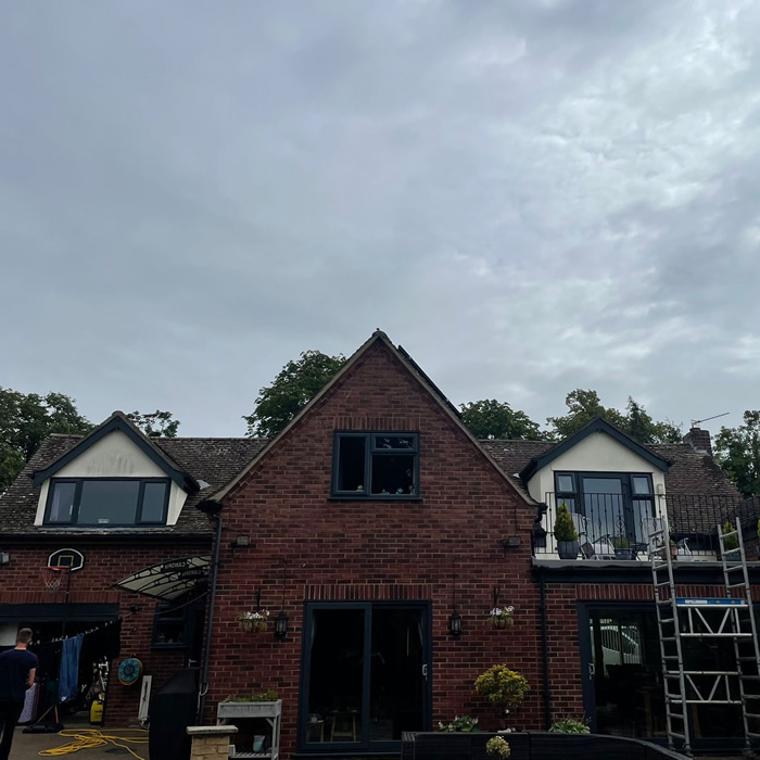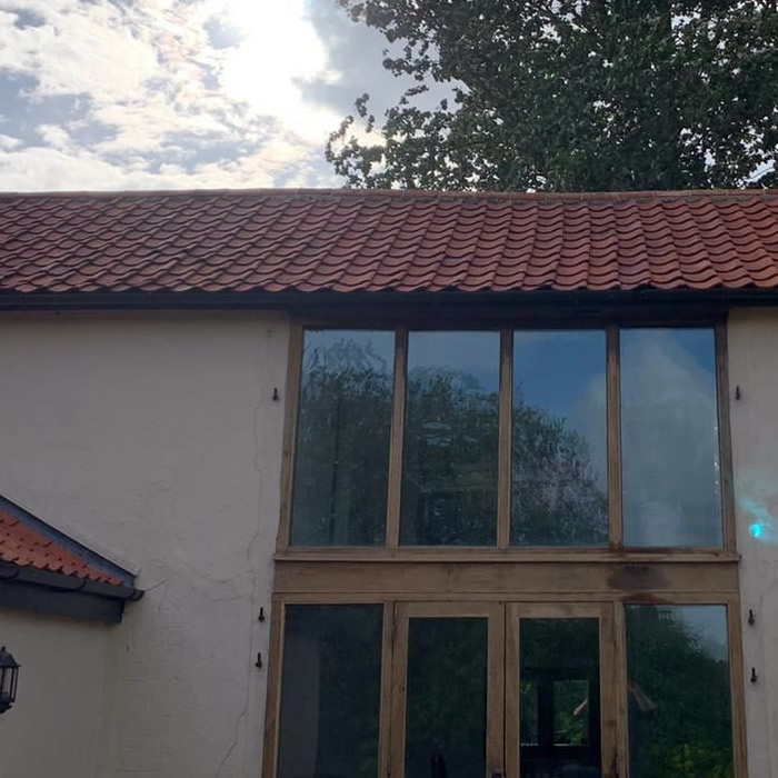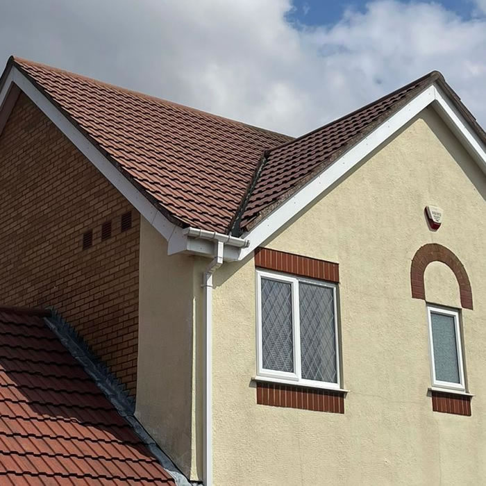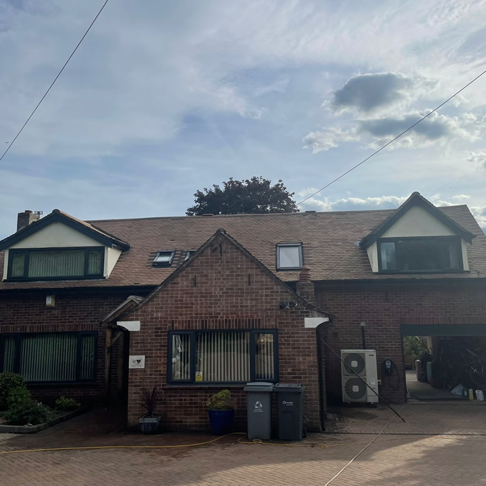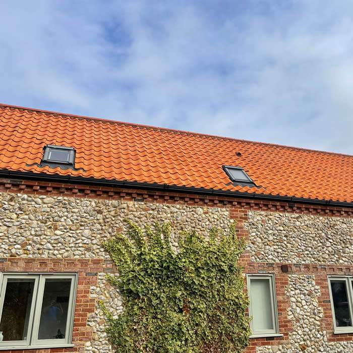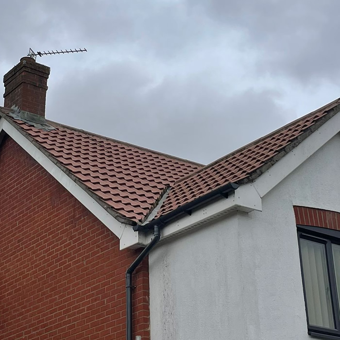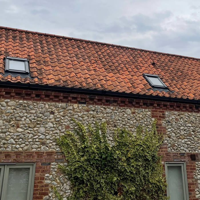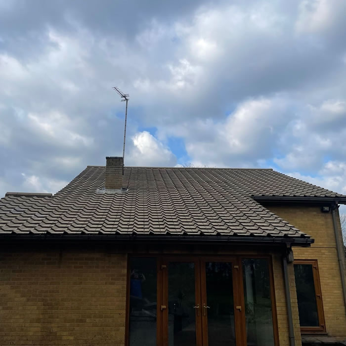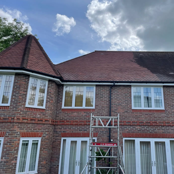 Cleaned red roof tiles restored colour. No lichen, moss or debris